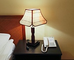 Номер оборудован телевизором, холодильником, телефоном, сейфом. Напольное покрытие – ламинат или натуральное дерево и плитка.